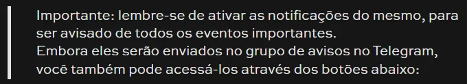 Para receber todos os avisos, entre no nosso grupo de avisos do Telegram, apertando aqui.